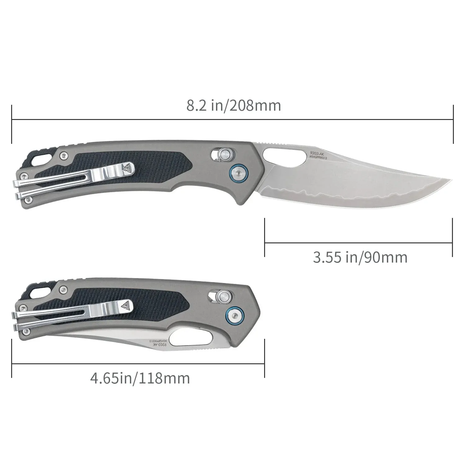 9203-AK Lam 140Cr Powder Stainless Steel blade, Aluminum+ black G10 inlay handle, Ambi Clip, Ambi Lock