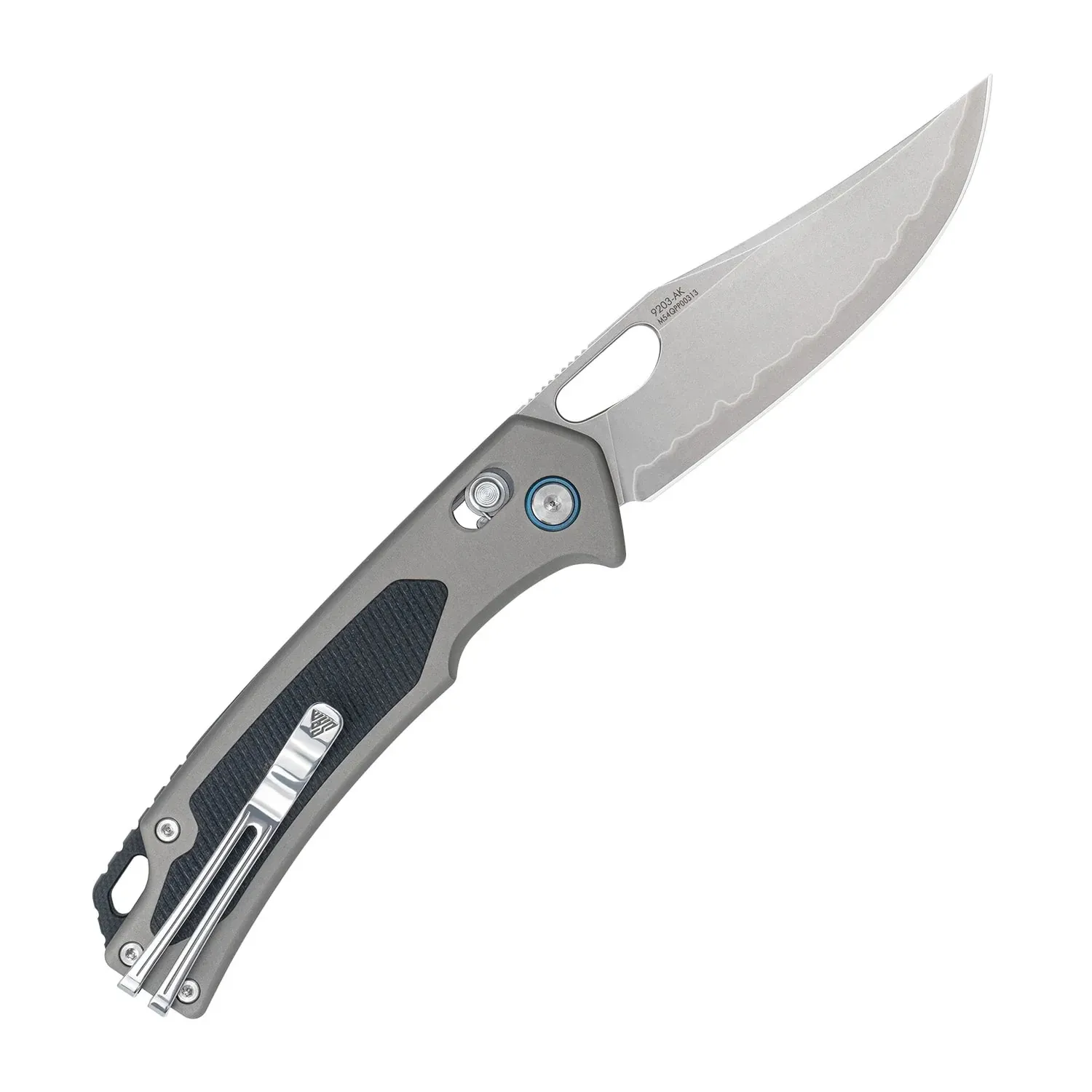 Name: Retriever Overall Length: 205.5 mm / 8.09" Knife Weight: 86g / 3oz. Blade Material: Laminated 140Cr Steel Blade Length: 90 mm / 3.54” Blade Thickness: 3.1 mm / 0.12" Blade Finish: Bead blast Handle Material: Aluminum, black G10 inlay Pivot Assembly: Ball Bearing Lock: Ambi lock Features: 1. Ambi clip can be removed and installed on the other side of the handle without the need for additional tools. 2. Cooled Sharpening ensures that the blade maintains its hardness and performance characteristics, resulting in a sharper, more durable edge. 3. Laminated Steel (140Cr): By being laminated with 2 layers of other stainless steels, the blade provides comparable characteristics to S35VN steel.