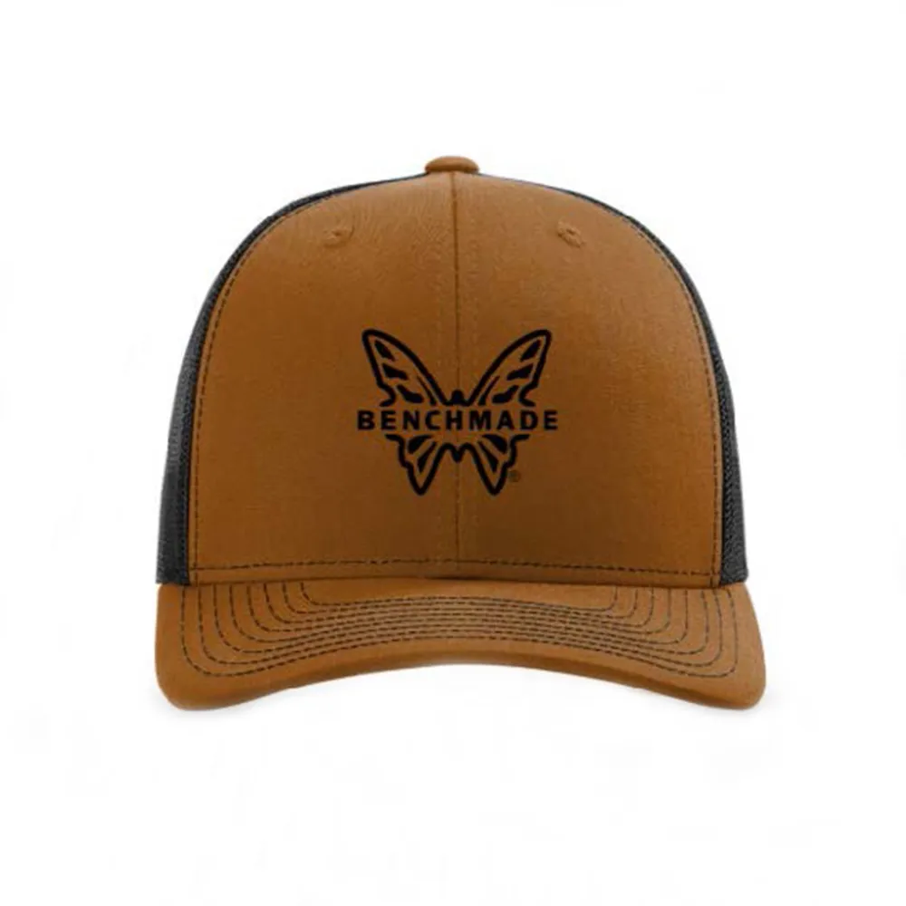 This Benchmade Classic Hat is a high quality classic trucker hat with a curved visor in caramel and black, a comfy cap with adjustable snapback to fit most. Rock the butterfly and rep the brand you trust for your knives and cutlery.