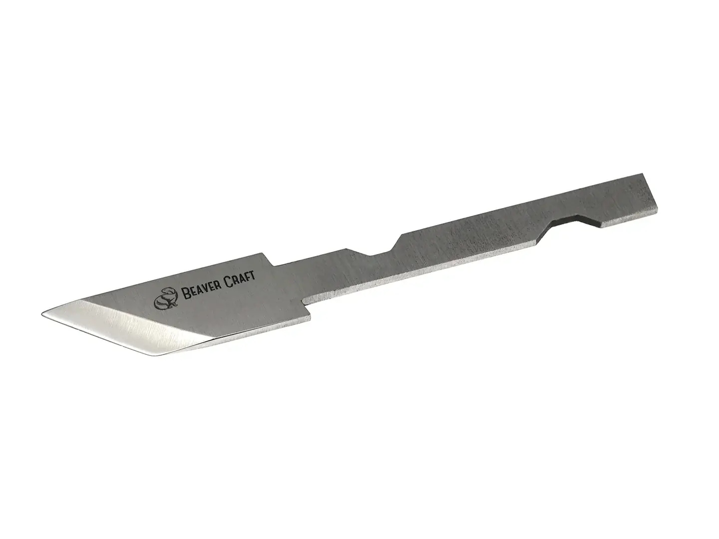 This blade for knife C12 is used for taking more vertical cuts where space is limited for a conventional whittling stroke. Made of high-carbon steel, the tool shank gives just enough to follow the contour of carving, eliminating the need to have a handful of traditional tools to finish a single profile.