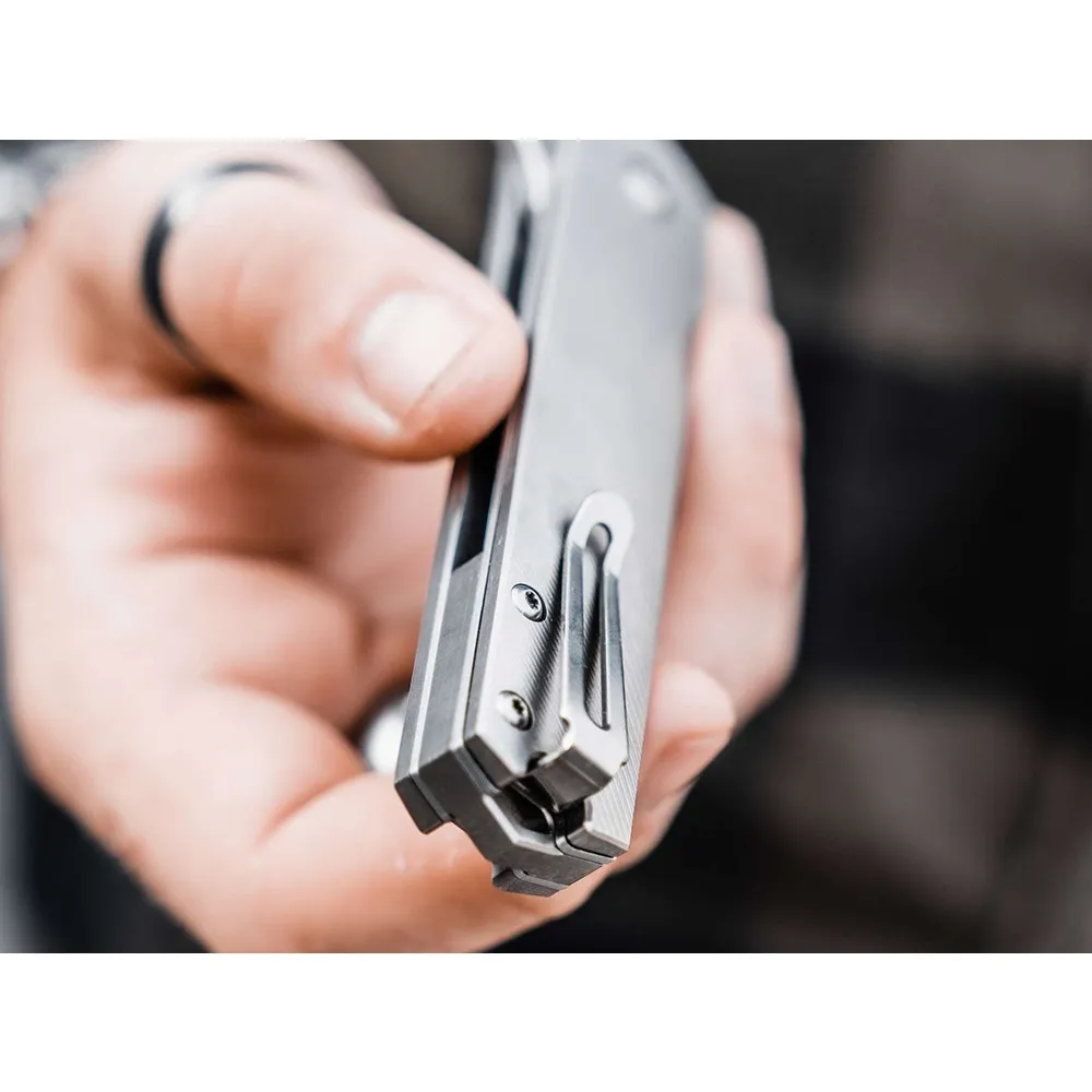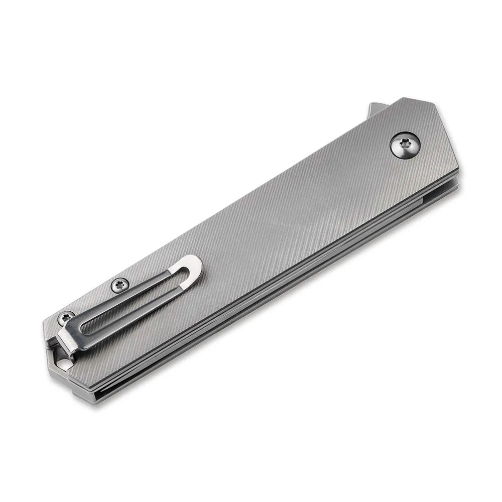 The Boker Plus Kwaiken Flipper by Lucas Burnley is probably one of the most influential designs of the 21st century. With its clear and practical shape, the modern pocket knife has become a true icon. The clean lines and slim design, which nevertheless accommodates the entire blade when closed, are absolutely unique. It is the further development of the well known Burnley Kwaiken Classic, a sheath or hunting knife also in the neo-Japanese style. Intuitive operation is the focus of this push-button version, because the ball-bearing blade made of powder metallurgy CPM-S-35VN opens reactively via flipper and unlocks with just one press of the button on the front handle. The noble claim is underlined by the handle scales of diagonally textured titanium, which gives the knife a very special appearance. The slim design and the exclusive material make the Kwaiken a noble crossover between a gentleman's folder and a tactical combat knife. Supplied with a clip (tip-up/r), a lanyard hole and a high quality pouch for storage.