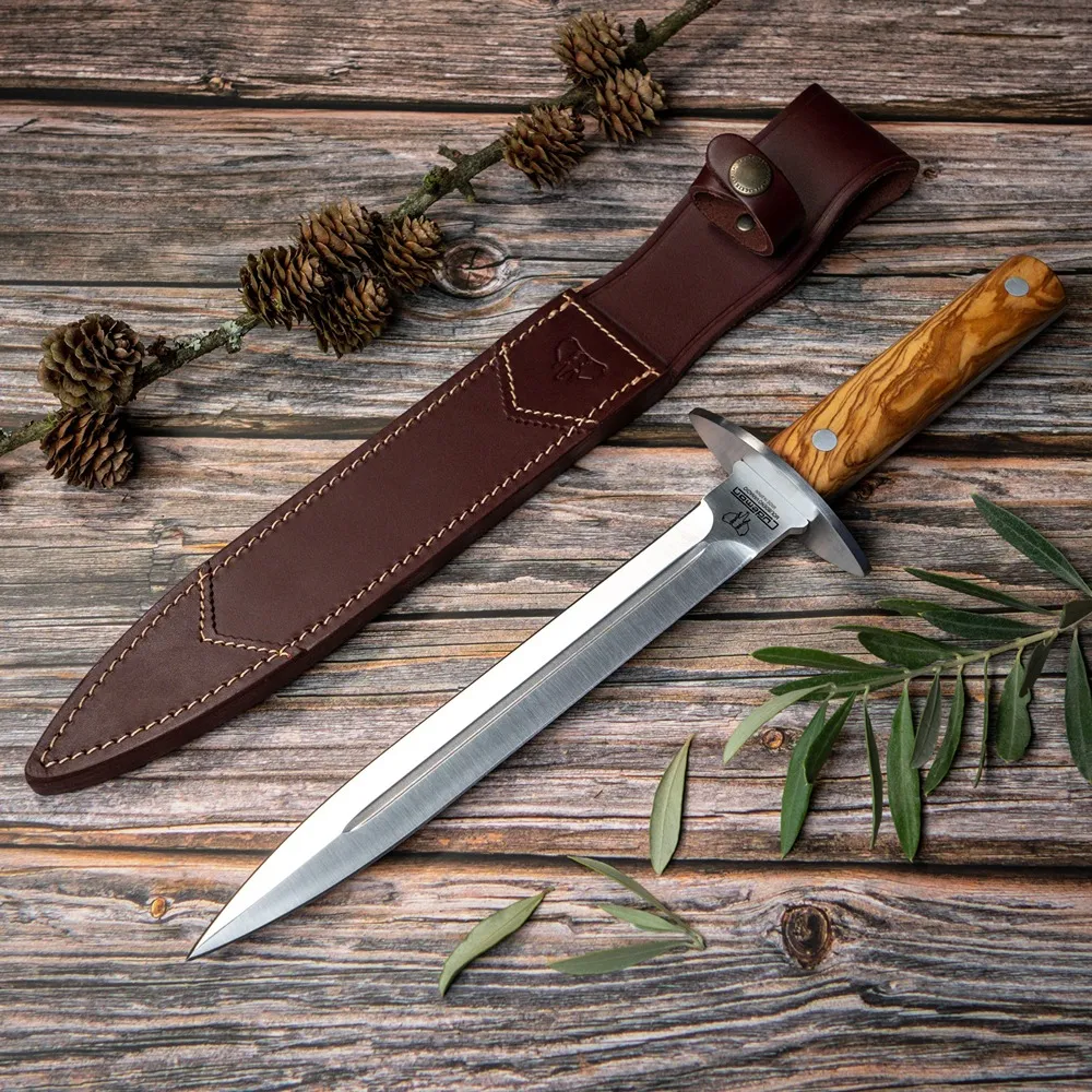 The Cudeman 113 olive wood dagger is the ideal tool for big game hunting. In France, in particular, this type of long, full tang dagger is widely used in hunting. The fact that it's a full tang dagger is a plus that hunters appreciate, as it doesn't weaken the blade like a tang dagger. Its 24cm blade provides the hunter with confidence from a distance. The handle is made of natural olive wood treated with oil to enhance its natural grain.