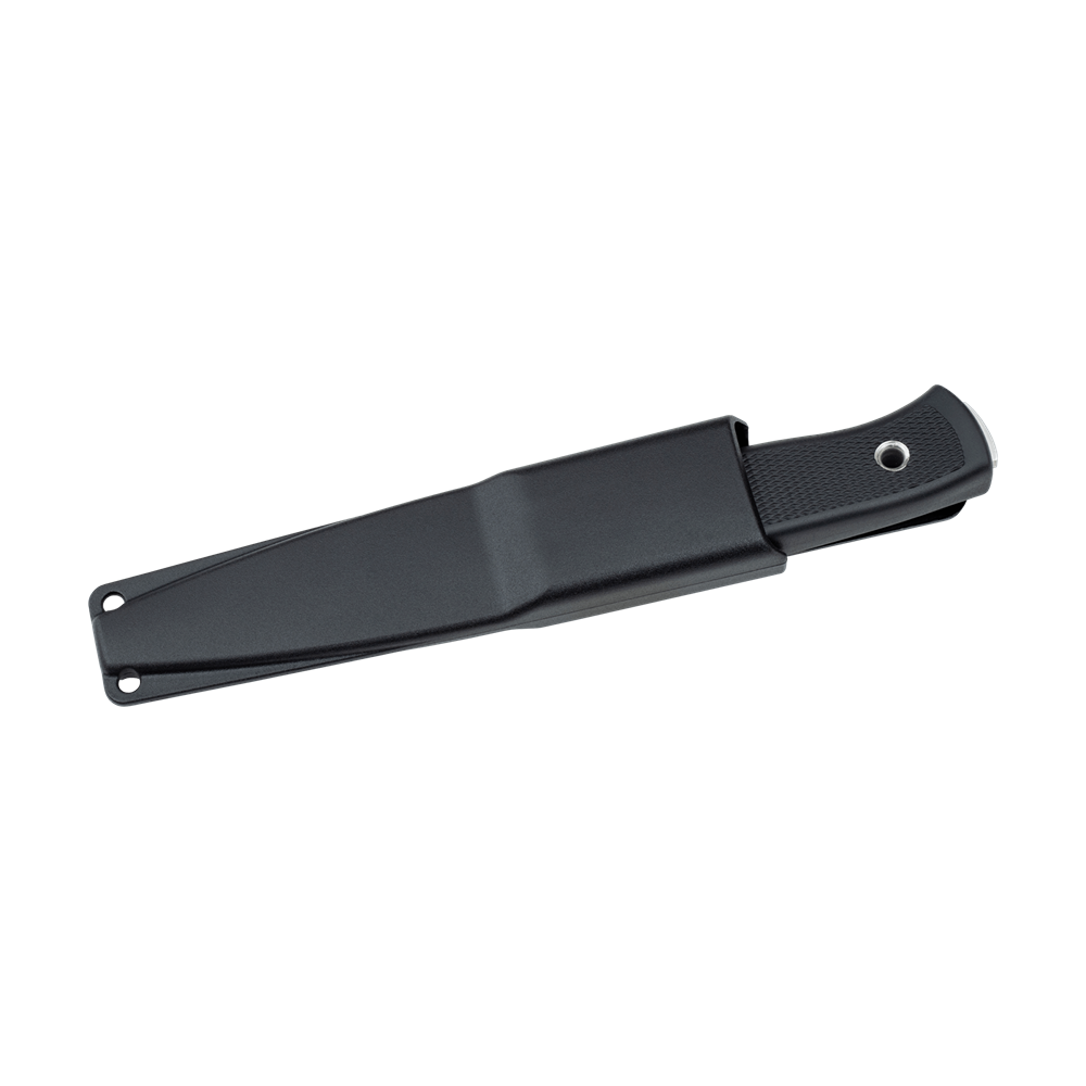 Note that in this embodiment, the knife/sheath cannot be applied to a waist belt, instead it works very well to put the knife in a leg pocket, not so common in the Nordic countries, but very common in central European countries. This sheath has no additional locks that our regular zytel sheath has got, but sits deep and secure through friction in the tight plastic sheath.