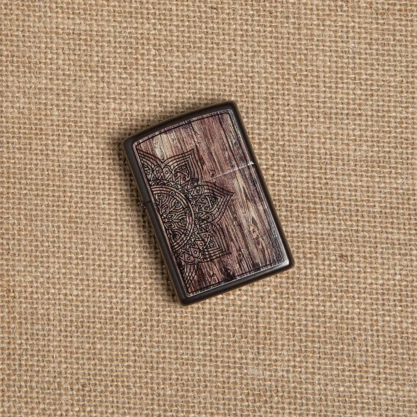 This new Brown lighter features an inscribed mandala on a wooden background where the mandala is a spiritual symbol in Hinduism and Buddhism, representing the universe. Mandalas offer balancing visual elements, symbolizing unity and harmony. Pick this up for yourself or a friend today. Comes packaged in a gift box. For optimal performance, fill with Zippo lighter fuel.
