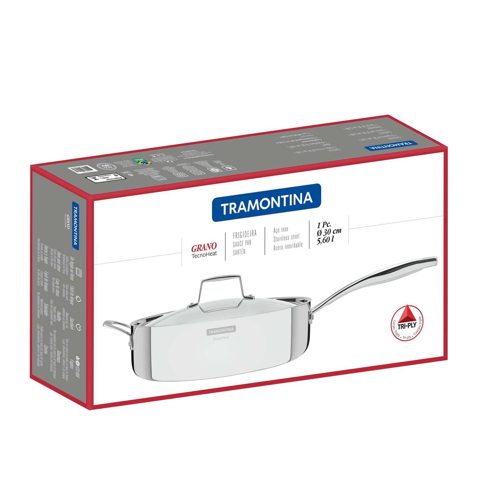 GRANO TRIPLY CLAD STAINLESS STEEL SAUTE PAN 30CM - 5.60L