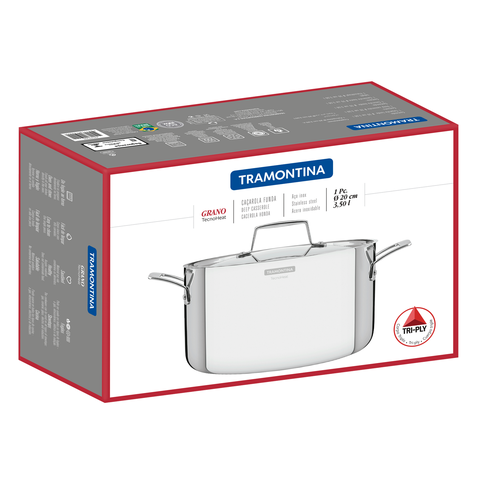 GRANO TRIPLY CLAD STAINLESS STEEL DEEP CASSEROLE 20CM - 3.50L